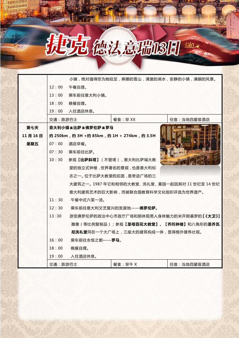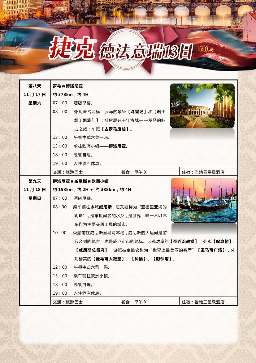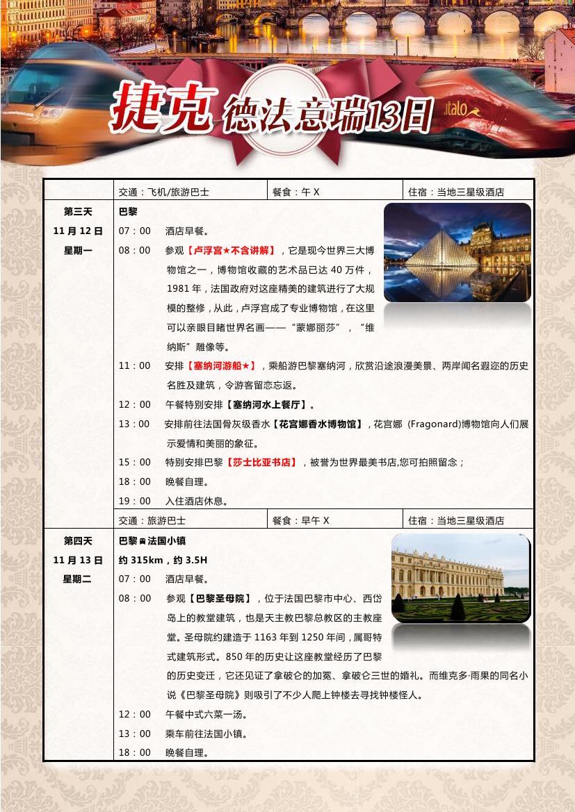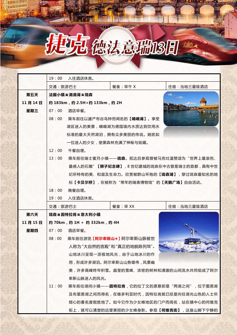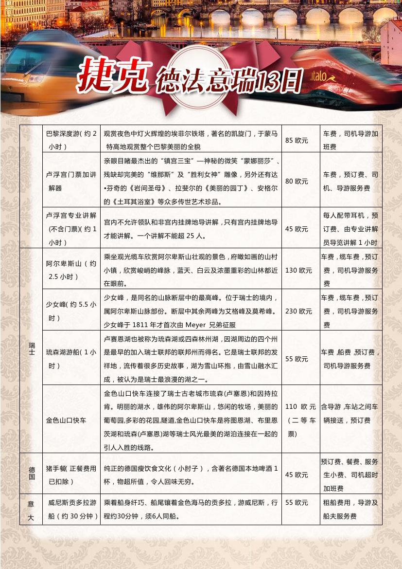 > 【超值一价全含】布拉格+德法瑞意五国13天10晚双飞跟团游—海航赠送呼市联运,24小时快签