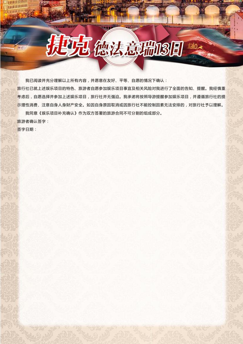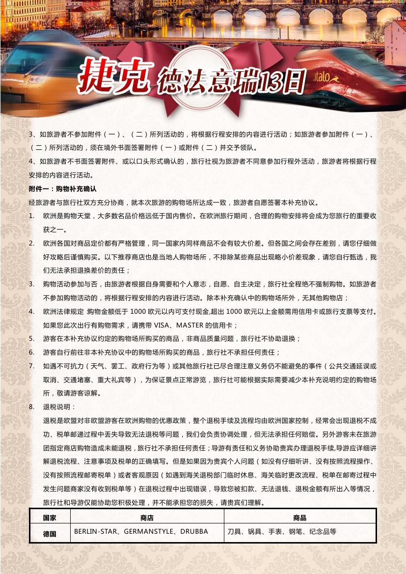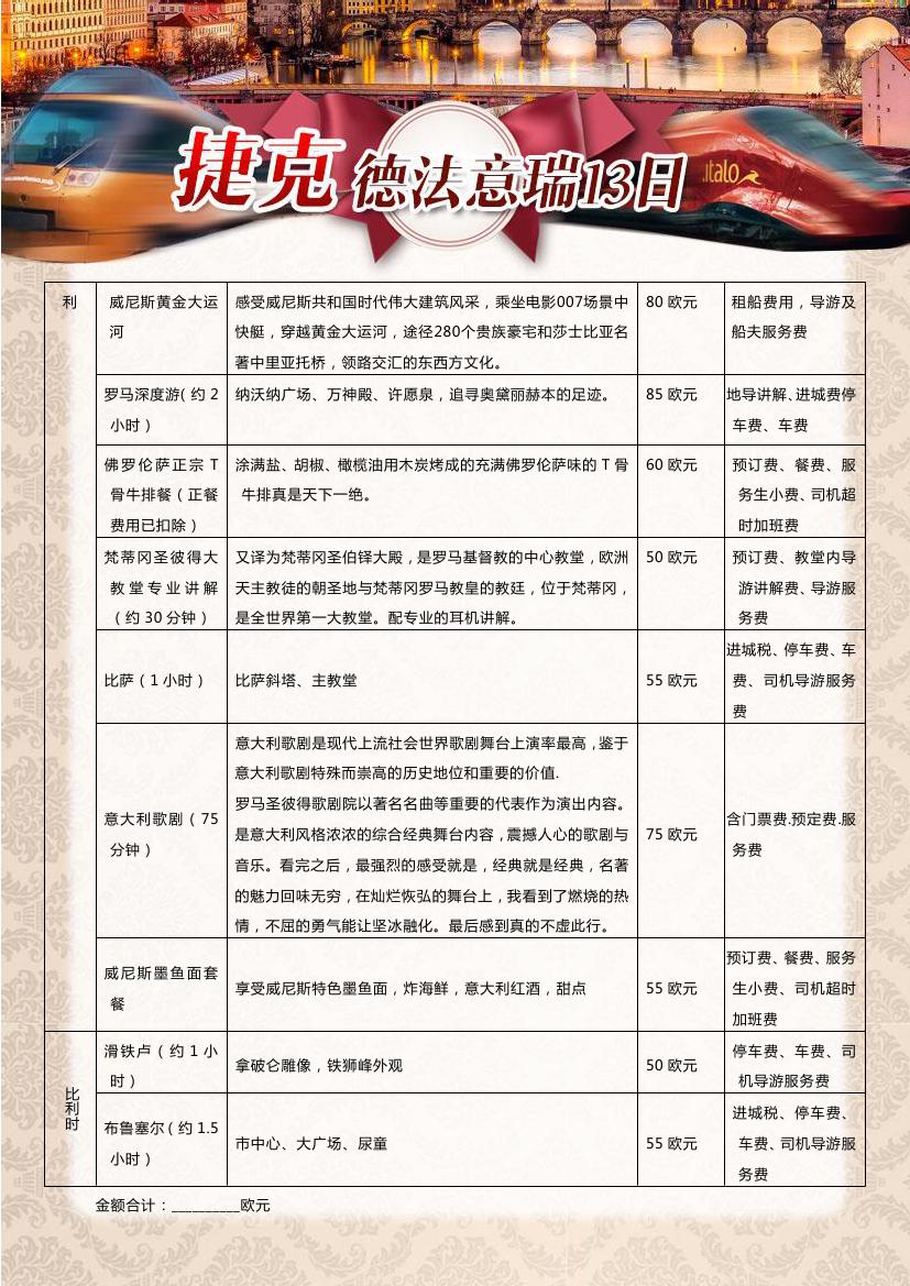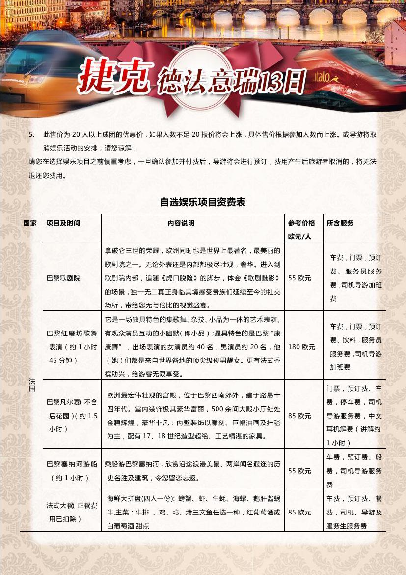 > 【超值一价全含】布拉格+德法瑞意五国13天10晚双飞跟团游—海航赠送呼市联运,24小时快签